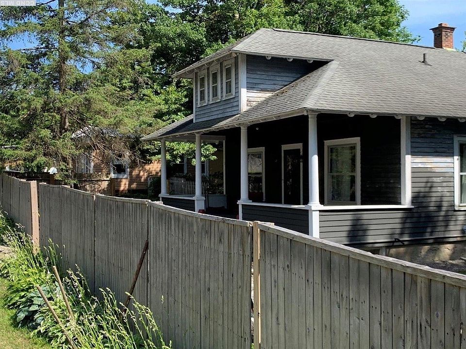 Cottage home with front porch all the original wood trim and hardwood floors. Nice big front porch and a roomy deck out back. Spacious open floor plan with lots of natural light. Master bedroom ensuite on the first floor. Another full bath on the first floor. Off the kitchen is a butler's pantry with a spiral staircases leading to a large finished bedroom in the basement. Wood stove in the living room heats up most of the first floor. Grand original staircase to the upstairs. Landscaped yard with one car garage with potential studio. Needs some TLC but has so much potential.