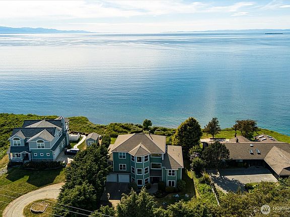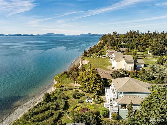 Custom-built Luxury Waterfront home in Whidbey's West Beach area. Fully updated 3-story home w/spectacular water & mountain views. Over 4,494 sqft with 670 devoted to storage & hobby area on lower level. Primary ensuite on 3rd floor w/full bath, library, walk-in closet & private deck. Main floor on 2nd level w/open floor plan, hickory floors, formal dining & living rooms, cook's kitchen w/hickory cabinets & black appliances, plus quartz countertops throughout. Double door front entry w/marble floor, guest suite, den/office, 2-car garage & shop on 1st floor. Yard has gardens, a patio, & tree-lined privacy. Watch cruise ship traffic & sunsets relaxing on multi-level decks. Home appears larger on outside, but it's classic & cozy on the inside.
