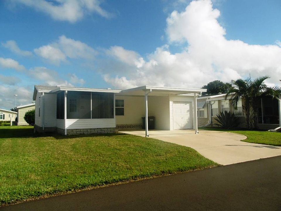 This adorable two-bedroom, two-bath home has recently had a "makeover" featuring laminate flooring throughout and freshly painted cabinets in the kitchen. Being sold fully furnished, its the perfect get-away from cold winter months up north. New A/C in 2014! To enjoy the best retirement community in town for the least amount of money, this is the perfect place for you. Purchase includes ONE YEAR FREE GOLF!