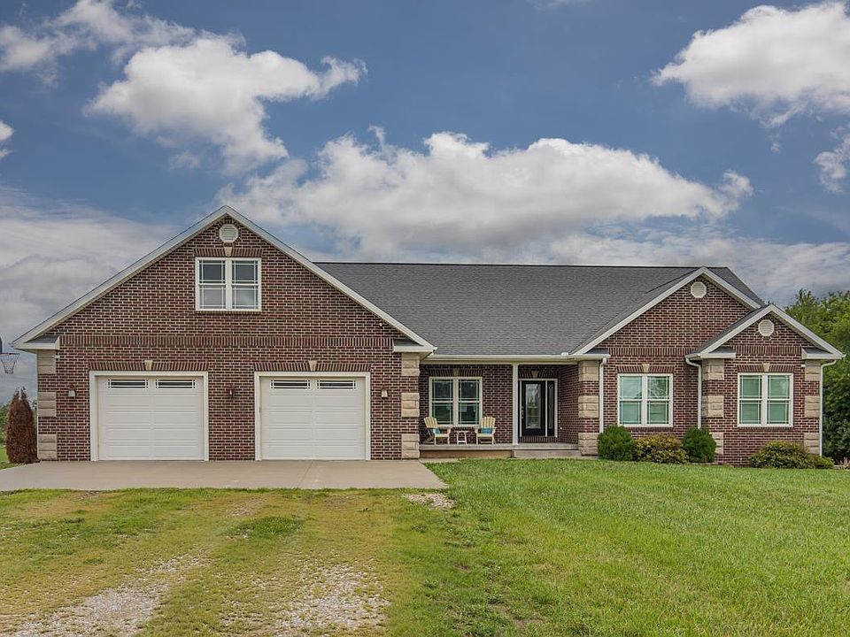 This spacious ranch style home will not last long! Custom built home with open floor plan. Hardwood floors, custom cabinets. 5BR, 3BA home with full finished walkout basement and oversized 2-car attached garage. Over 3300 sq ft and sits on 3.3 acres just minutes from shopping and dining. Covered front porch and large deck. Also has attic for storage. All of this and much more! 2023-08-14