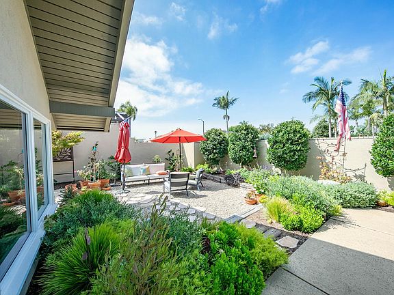 Highly remodeled single story 3 bedroom home in the exclusive mid-century modern Deane Gardens tract in South Huntington Beach. Gorgeous updated and upgraded DEANE GARDENS beauty! Zero-lot-line mid-century modern home provides peace and privacy behind walls. This home features a wrap around lot with beautiful gardens and crystal clear pool in rear. Light, bright home with sliding glass doors from many rooms. Spacious living room with fireplace, vaulted beamed ceiling, and walls of glass! Updated kitchen features newly refinished shaker-style cabinets, granite counters and stainless steel appliances including a professional stainless steel range and chimney hood! Both bathrooms have been remodeled. Master bathroom features custom vanity and step-down tub/shower! Spacious master bedroom features large walk-in closet + 2 sliding glass doors--one leading to plant-filled atrium and one to beautifully landscaped rear yard! Owner pays for weekly pool service and weekly gardener. Trash included. Tenant pays for utilities (water, gas, power).