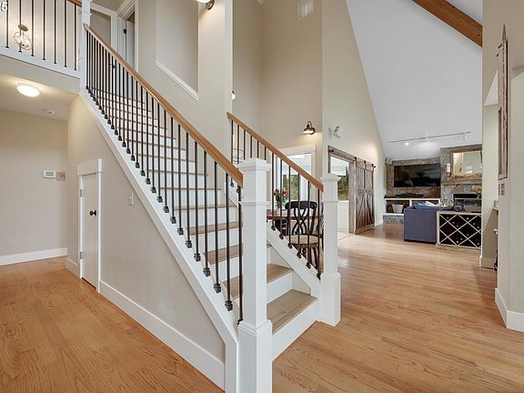 Welcome to wine country! Beautifully updated home on 11+ acres with stunning valley and vineyard views. The vaulted living room, kitchen and dining room, feature beautiful beams, creating a spacious and inviting atmosphere. The main floor boasts updated trim, doors, fresh paint, and a sunroom that fills the home with natural light from large windows and skylights. The kitchen shines with granite countertops and stainless steel appliances, while hardwood and tiled floors add style and durability throughout the main level. Whether you're looking for a place to entertain, enjoy the views, or accommodate animals and hobbies, this property offers a unique blend of comfort and versatility.