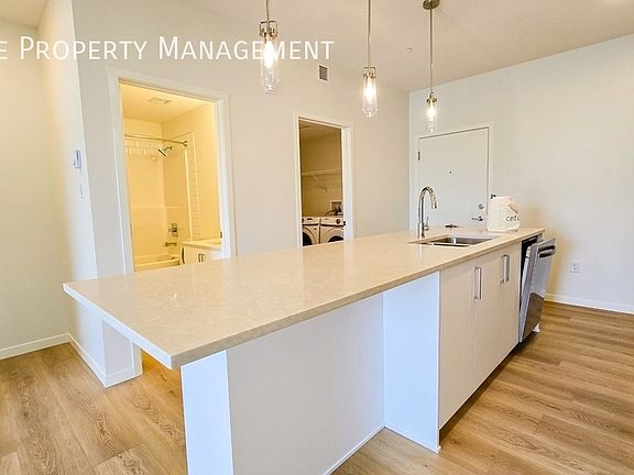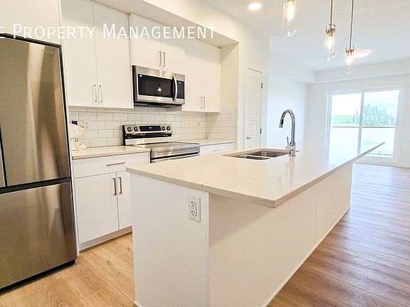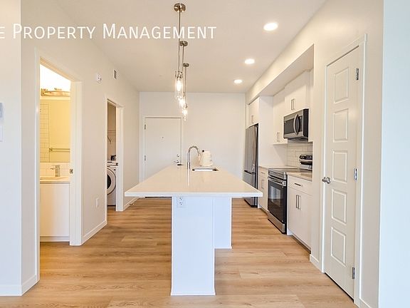 Sleek and modern kitchenPlenty cabinet storageOpen-concept designWindow coveringsNearby parks pathways greenspaces