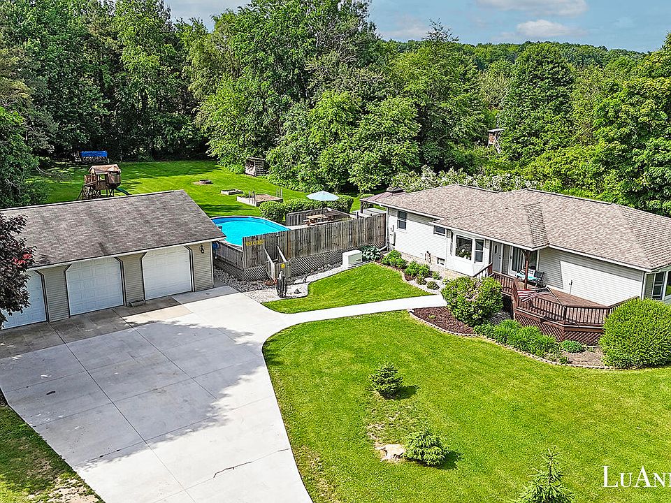 'Welcome Home' to your peaceful paradise on 20 acres - whether you are a nature lover, a hunter or just want some space between you and your neighbors - you are going to love this property! Mature pine & hardwoods are a haven for wildlife - deer, turkeys & songbirds - enjoy the manicured trails & clearings. The lovely ranch home has been meticulously maintained & is loaded with updates - mechanical & cosmetic. Spacious living room, kitchen w/snack bar, large primary bedroom with dual closets, main floor laundry - you will appreciate the built-ins, character & lots of natural light - wooded views out most windows. Downstairs is partially finished with a second full bath & non conforming bedroom/office space. Enjoy outside living from the extensive decks, hot tub & pool, large tree line yard and play area. Plenty of room for storage & vehicles in the 3 stall garage. There is also a lean-to for additional storage. Recently added whole house generator too! Come visit this fabulous property - your next 'home, sweet home'! *Seller requests agent to hold all offers until 6/11 at noon.
