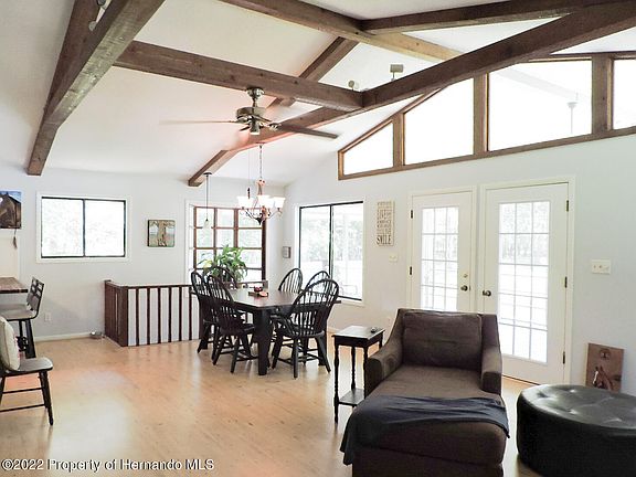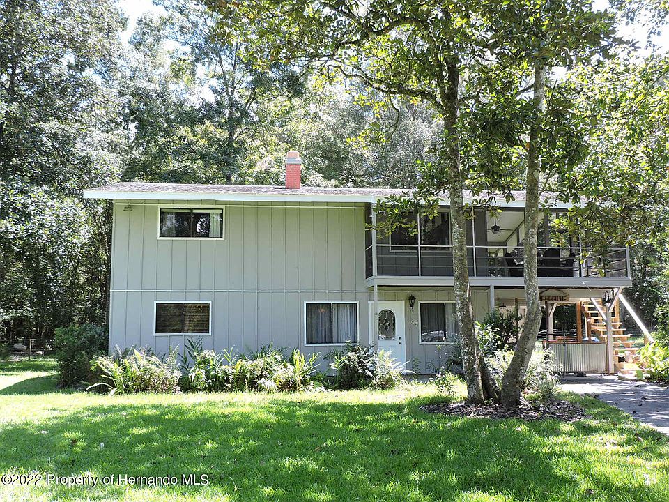 ACTIVE WITH CONTRACT! Fabulous home in Hammock Acres subdivision (one road in and out) on 2.5 acres zoned AR, fenced and cross-fenced, 2 stall barn with water/elec, tack room, storage, and hay bin, don't forget the round pen, plus 24x26 workshop with roll up doors, elec/water/a/c and concrete floor. Beautiful secluded 2.5 acres with scattered trees for shade. This 2-story home offers 3 bedrooms (main br upstairs and 2 downstairs) and 2 full baths, living rm with wood burning fireplace upstairs and large dining area by the kitchen all upstairs. Additionally there is a huge family room downstairs along with the other 2 bedrooms and indoor laundry room. The 12 x 30 screen enclosed upstairs porch overlooks all the property as it wraps around the sides of the house. Incredible views! Stairs lead down from the porch as well as an inside staircase. Updated kitchen with closet pantry, butcher block counters, wood cabinets, farm sink. The vaulted ceilings with beams and loads of windows give this home an expansive feel with over 2,000 sq ft of living space already! Large enclosed storage area at the back of the carport. A/C is 1 year old! The roof isn't as new but seller will discuss replacement with the right offer. Come take a look and try this home on before it's gone!