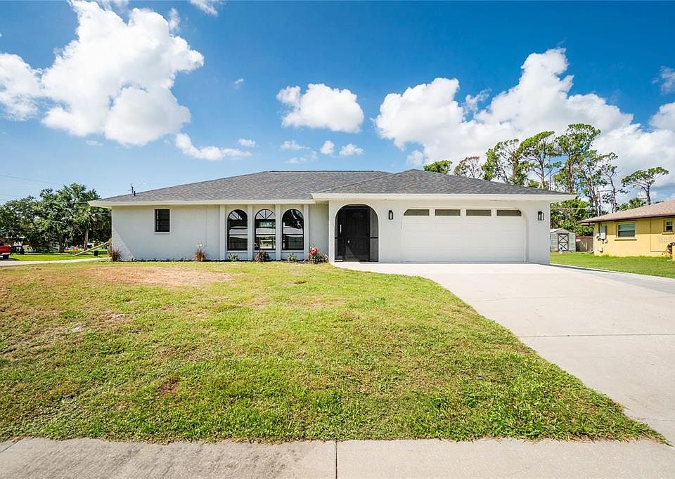 Welcome to your piece of Florida paradise with Southern Exposure! This spacious pool home on an oversized corner lot is placed perfectly in a quiet Port Charlotte neighborhood. The inside and outside has been completely updated and features three bedrooms, two bathrooms, formal living room, family room, dining room, a large kitchen, breakfast nook, inside utility room, and a two-car garage. From the minute you pull in the driveway you can see the attention to detail and spectacular upgrades that went into this home. This split concept home has been enhanced with a long list of upgrades including new tile flooring, new hot water tank, new roof, new air conditioning unit, fresh paint, and much more! The recently updated living room, dining room, breakfast nook, and family room have high ceilings, tile flooring, updated lighting fixtures, and pocket sliding glass doors that open to the lanai and pool area. The beautifully renovated gourmet kitchen features a massive island, large modern stainless-steel undermount sink, white shaker cabinets, updated cabinet hardware, quartz countertops, upgraded lighting, tile backsplash, stainless steel hood vent, brand-new stainless-steel appliances, and a large pantry. The inside utility room has white shaker cabinets, tile flooring, quartz countertop with undermount stainless sink, and washer/dryer hookups. The kitchen dinette has a lovely view of the pool and backyard- perfect for sipping on your morning coffee and enjoying the birds and other wildlife. The oversized master suite features tile flooring, two walk-in closets with built-ins, updated ceiling fan, new double sink vanity, modern water fixtures, updated lighting, walk-in tiled shower, smart vanity mirrors, and pocket sliding glass doors leading to the pool area. The second and third bedrooms both have tile flooring, an updated ceiling fan, and a walk-in closet with built-in shelving. The second bathroom features tile flooring, new double sink vanity, modern water fixtures, updated lighting, smart vanity mirrors, and a tiled walk-in shower. The outside living space is truly spectacular and features a 32’x10’ covered lanai and a spacious pool area. This property also features a shed for extra storage, oversized driveway for extra parking, and much more! The location of this home is perfect with only a short drive from Charlotte Harbor, beaches, restaurants, entertainment, nightlife, and much more. Schedule your showing today, because this home could be gone tomorrow!