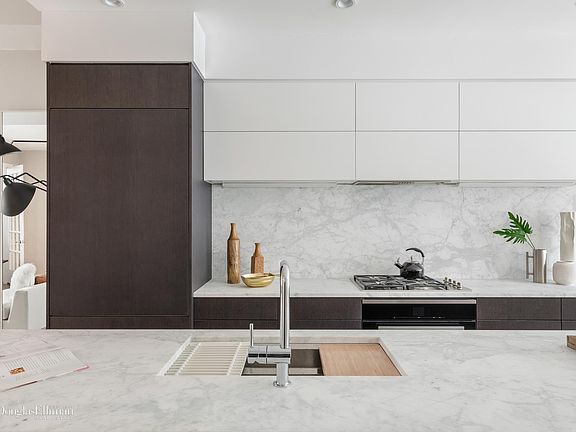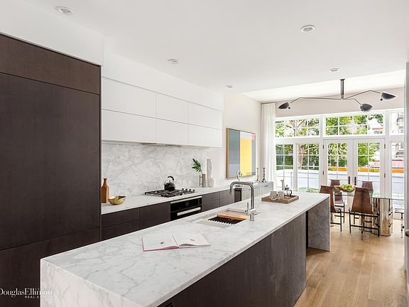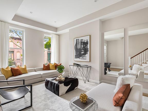 203 Bergen Street is one of the most thoughtfully renovated and impeccably designed homes currently available in Brooklyn. This 1870s townhouse has undergone a meticulous transformation which has preserved the elegant and historic exterior while crafting a home that is warm, modern, and eminently livable. With approximately 4100 square feet of living space on five levels, this home has been configured as a spectacular owner's triplex above a garden duplex which could be a high-income rental or superb guest suite. Upon entering, this home greets you with a grand triple parlor dedicated to living and dining, with a magnificent chef's kitchen with 13' marble island, and a dining room with French doors leading onto sunny terrace. A sweeping handcrafted staircase ascends to the upper floors. The floor directly above the parlor offers three huge bedrooms, a full laundry room, and a beautifully appointed full bath. The master suite is magnificently appointed and occupies the entire top floor with a massive walk-in closet/ dressing room and a windowed 5 piece master bathroom with floor to ceiling marble. The top floor also opens onto a magnificent south facing terrace. Beneath the parlor, the garden floor has been reimagined as a gorgeous 60' deep two bedroom, 2.5 bathroom duplex with direct access to the landscaped two-tiered yard and an excavated climate controlled cellar rec room and additional laundry room. The level of finish throughout this home is superb with white oak floors, central AC and heat, 1.875 in solid core doors, and Pella windows. Both kitchens are state of the art with custom millwork, Miele appliances, German plumbing fixtures, and stunning honed marble. Located on tree-lined Bergen Street, very close to renowned restaurant row Smith Street, your new home is on one of the most coveted blocks in one of the most desirable neighborhoods in Brooklyn, Boerum Hill. You are in the midst of world-class shopping including both international brands and locally loved boutiques. Some of the finest dining in NYC, parks, schools, and transportation are at your fingertips. World-renowned destinations include the Brooklyn Heights Promenade, Brooklyn Bridge Park, the BAM cultural district and the Barclays Center.