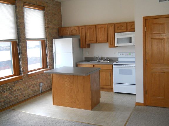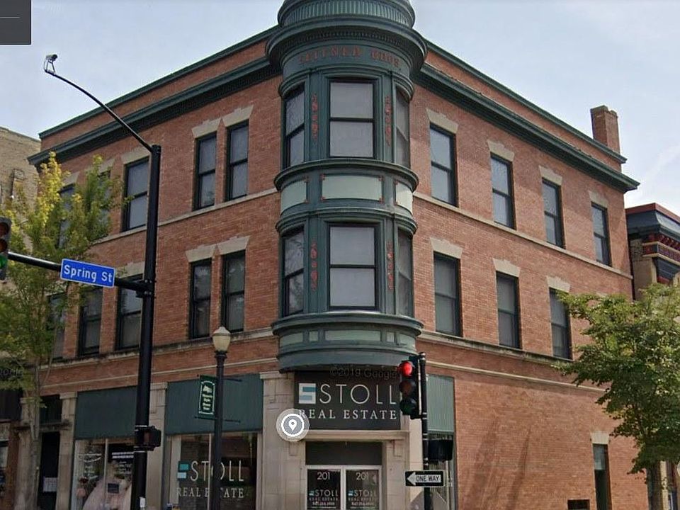 Modern studio apartment with turret in historic downtown building in Elgin. 3rd walk-up corner unit with lots of windows. Studio apartment with sleep area created by 1/2 walls. Resident responsible for all utilities except water. Electric, phone and cable need to be set up and paid by resident. Ceiling fans, Exposed brick exterior walls, 10 foot ceilings No pets, No smoking, No waterbeds. First month and one month security deposit. Must pay for own credit report with application. Credit score of 700. Occupancy limit of 1 person.