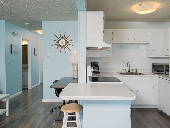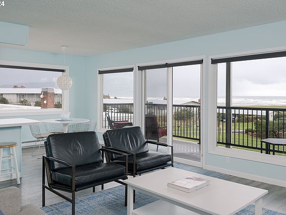 PRICE ADJUSTMENT!! Breathtaking views and sunsets from this beautiful Pacific Palisades condo located in Gearhart OR. Situated on the top floor at the southern corner, this unit features 2 bedrooms, 2 baths, a cozy fireplace, a spacious deck, a laundry room, a tandem garage, an east facing porch and comes fully furnished. Residents also enjoy access to an on-site indoor pool. Just across the street, discover the Gearhart Golf Links and the culinary delights of McMenamins. A brief stroll away are tennis, basketball and pickleball courts, along with shopping options. This condo offers a welcoming ambiance ideal for permanent residency, a home office, or as a vacation retreat. Presently operating as a lucrative short-term vacation rental through Gearhart by the Sea. A must see!