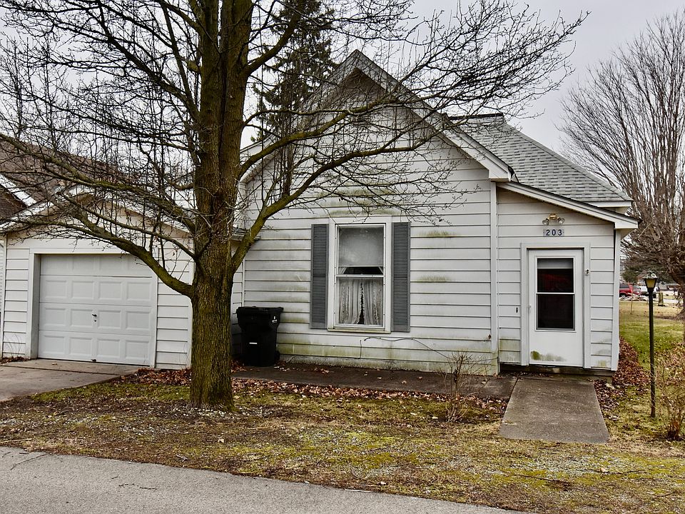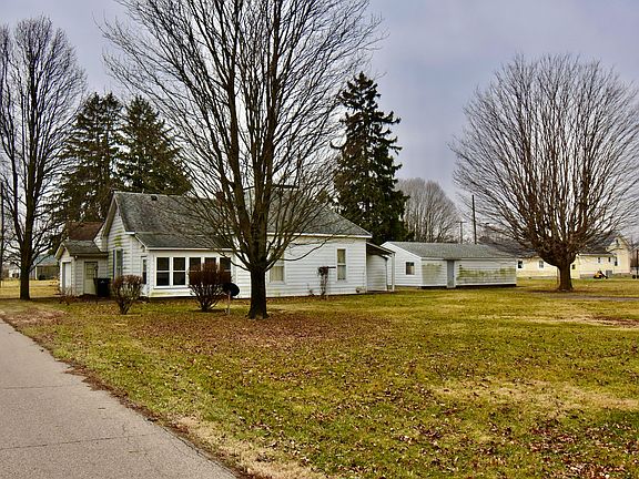 MULTIPLE OFFERS RECEIVED. SHOWINGS TO COMMENCE BY 5:00 2/15. All offers due by 8:00pm 2/15 Home is an estate sale. Seller does not live in the home. This house has lots of potential and it sits on 3 lots just a bit over half an acre. Two bedroom with a one car garage on the house and a 4 car tandem garage off the alley fully concreted with power. Home has had the exterior walls spray foamed and the attic insulated by USA Insulation(2016). Newer gas furnace, 2016 water softener 2012 roof. Refrigerator, washer & dryer stays but not stove. Ceiling stains are from prior to the roof. Home needs a good power washing in the spring. Seller believes there to be hardwood under front room and the family room. AGENTS USE SHOWINGTIME NOT BROKER BAY