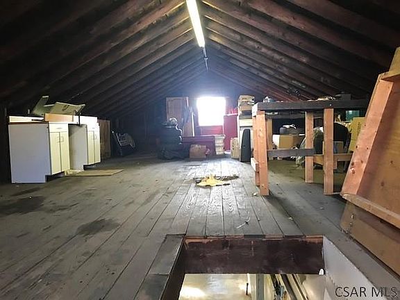 Nice roomy move in house, Large Living Room, Dining Room, Eat in Kitchen, with stove, fridge, dishwasher(not working), Wood cabinets, Butcher block countertops, 1/2 bath, 2nd floor features 4 bedrooms, full bath with tub and shower, finished 3rd floor for 5th bedroom or family room, full basement, level lot, Large 6 car garage with power, heat and full second floor...great man cave and tons of room. Must see this lovely home..not in flood plain