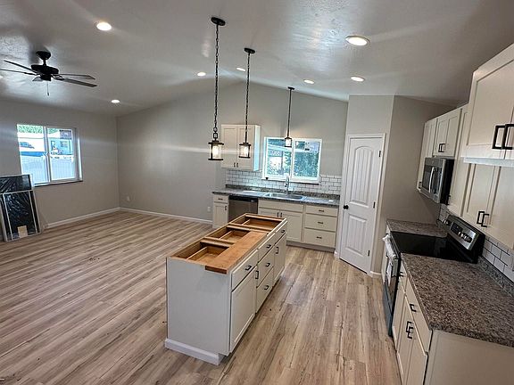 Welcome to this three-bedroom, two-bathroom layout with 1320 square feet of space sounds very appealing. The two-car garage is a great addition for homeowners with vehicles or extra storage needs. The proximity to medical services and shopping is a huge plus for potential buyers. It offers convenience and accessibility, making the location highly desirable. The open concept floor plan and vaulted ceilings are popular features that give the home a spacious and modern feel. Combined with the beautiful vinyl plank flooring, they enhance the overall aesthetics of the property. The butcher block island with seating for three is an attractive feature in the kitchen, providing both functionality and a gathering space for family and friends. The mudroom is a practical addition to help keep the home clean and organized, especially during wet and muddy seasons. The front patio area offers a great spot for residents to relax and enjoy summer evenings.