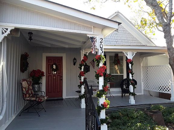 Classic 1940's farm house with covered front porch, wood floors, old fashioned original windows and mill work. Three bedrooms, two baths and family room. Metal roof and recent new exterior paint. Gas cooking. Double lot on quiet street. Wood stoves in living room and family room. Recently connected to public sewer so lot could have a second dwelling. Over the years the home has had updates to plumbing and wiring and added central heat and air. Fenced .43ac park like yard and storage sheds in rear yard. Lots of parking. If you like the charm of older homes you will love this one!