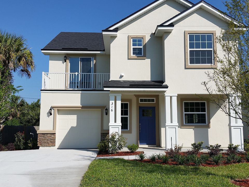 Brand New Island Home on 3rd Street in St. Augustine Beach! Coastal Cottage elevation with 2,081 sf, 3BR/2.5BA + bonus room! Upgraded kitchen w\granite counters, 42" Cabinets, eating counter and stainless appl. Spacious Living room opens to a large 13X12 sun room! Quality construction with full stucco finish, hurricane shutters, Low E vinyl windows, full landscaping and irrigation system. 18" Tile downstairs and in all baths!