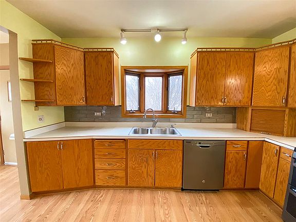 This picture perfect farmhouse is ready for you! The main floor features an amazing kitchen, a dining room with a gorgeous view through the bay window, living room with access to the massive deck, master en-suite with a 3/4 bath and the laundry room. Move upstairs where you will find 2 more bedrooms and a full bath including a wonderful soaking tub. The walk out basement boasts a large family room, hobby room with storage, and an office with a half bath. Outside you will find an oversized 2 stall garage that includes a workshop along with another storage room, a massive 40x80 shop that includes loft storage, a kitchenette area, a 3/4 bath, propane fireplace, luxury vinyl flooring and carpet, and in floor heat with newer boiler. All of this is on just under an acre of land with gorgeous views to enjoy while sitting on the deck or enjoying being outdoors. Call for a private showing today!