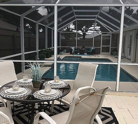 Its all about location! This luxury single story pool home is situated on a rare double lot 1 block from the ocean. The valuable oversized lot boasts mature landscaping and provides shade and complete privacy that can't be easily found with a beach property. This home is an entertainer's dream. The soaring ceiling of the greatroom leads to a wide expanse of windows and doors showcasing the completely refurbished inground pool. The designer kitchen is outfitted with new appliances and is wide open to the main living spaces. The huge Master suite has its own sitting area and the spa bathroom has a room size shower with window. The custom master walk-in closet has his and hers spaces to showcase your favorite apparel. This home is located on a dead-end road in a quiet residential neighborhood, yet is walking distance to all your favorite beach restuarants. This is a rare opportunity to own a perfect retirement home in St Augustine Beach.