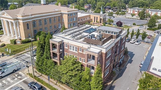 Elegant & historic Landmark building! Conveniently located on the corner of Church Street in downtown Hendersonville. Property has been beautifully renovated for energy efficiency while maintaining all of the charm of the 1920's. Gorgeous stain glass accents, window seats, hardwood floors, windows above interior doors, antique milk slots and more. Building features rooftop terrace with 360 degree views, an electric car charging station, elevator, reception area with controlled access, and security system. There are 5 total units, one being a penthouse. All suites have private balconies. Close to I-26. 30 minutes to Asheville. Call List agent for more information.