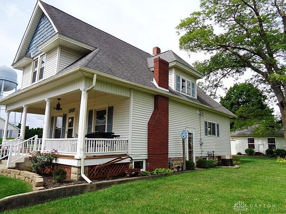 Looking for small town living? Historic charm meets modern conveniences. This lovely, updated home in Lewisburg just hit the market! Sit and enjoy the quiet neighborhood on the covered front porch. The entire yard is beautifully landscaped. Three to four bedrooms, remodeled kitchen with granite counters, pantry and new picture window. All new updated electric, newer water heater, shutters and extra blown-in insulation to knock the utility bills down. Charming living and dining rooms with built-in hutch and pocket doors. Beautiful original woodwork and doors. Loads of storage, which is hard to find, but not here! New duct work and new basement windows. Roof is about 10 years old. Outside is a 2-car detached garage with a wood burning stove for working in the garage on those cold winter days. Nice shed and chicken coop already in place. Large garden area to enjoy fresh garden produce and sunflowers! Enjoy the evening with a bonfire looking up at the stars. All this sits on a double lot. Plenty of room for kids to play and the invisible fence helps keep the pups safely in the yard.