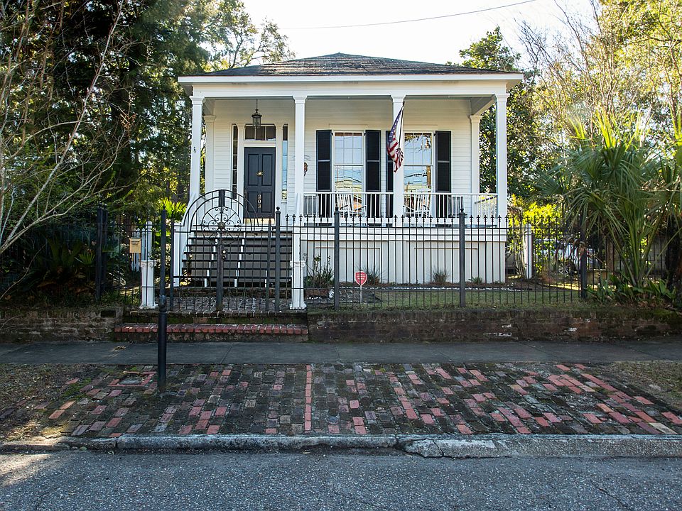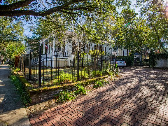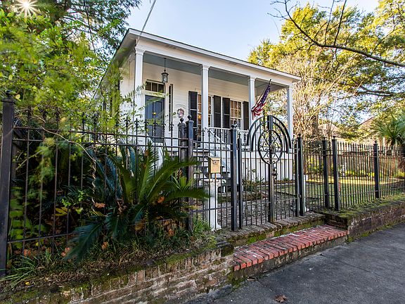 This Historic home, circa 1897 is located in the De Tonti Square District and backs directly to De Tonti Square Park. The house has beautiful heart of pine floors salvaged from the Historic Kress building on Dauphin St. There are 12 foot ceilings with plenty of open space and tons of natural light. Rooms include 2.5 updated bathrooms and kitchen, formal dining room, living room, and bonus building and shed out back. The home has two working wood burning fireplaces, a large amount of storage and closet space. Original moldings, antique chandeliers, and historic details add to the charm of this home. The large outdoor space has a great private brick paved courtyard with brick privacy wall, fountain, tool shed, access to the park and an added bonus building. There are two bedrooms and two and one half baths, approximately 1800 sq. ft. of living space. Exterior is freshly painted. A short walk to Dauphin Street and the Downtown Entertainment District. Enjoy quick access to restaurants, bars, and entertainment.