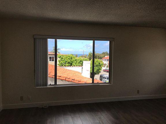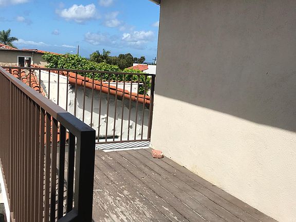 Bright upper apartment has distant views of blue water and warm afternoon sunsets from the living and dining area. Walking distance to beaches, dining, shopping, and downtown Del Mar Street. Room to park two cars off street in carport and driveway. Coin-op laundry facility on site. Owner pays for water and trash.