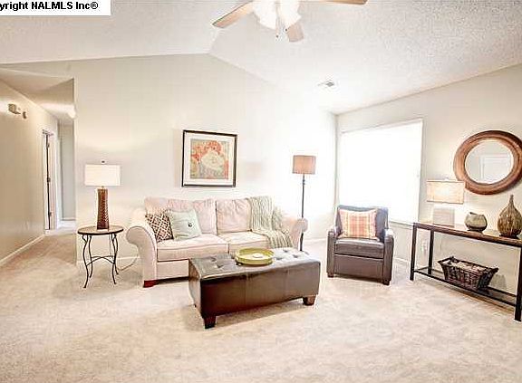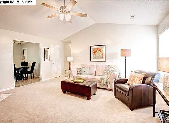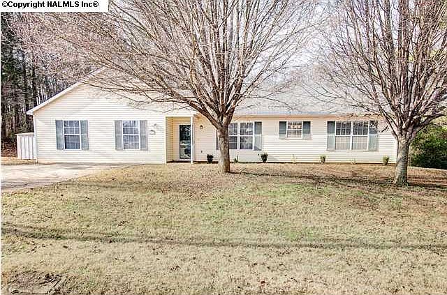 Immaculate 3 BR, 2 BA home! Situated on a lrg cul-de-sac treed lot(no backyard neighbors!).Recently updated- new carpets, ceramic tile in baths, crown moulding & much more! Living Rm w/ vaulted ceilings, ceiling fan, & FP! Spacious Kitchen & Brkfst Rm offers loads of cabinet & counter top space! LARGE BONUS ROOM (22x22)! Spacious Bedrooms w/ Ceiling Fans in all BRs! Great location-just 15 miles to Redstone Arsenal Gate 9 & 15 Miles to Huntsville Hospital! Refrigerator, Washer & Dryer to remain!