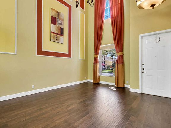 Home includes 4 bedroom, 3 full bath, 2 car garage. Office/sitting area adjacent to the master bedroom can be converted to a nursery or 5th bedroom. Jacuzzi in Masterbath. This home has beautiful engineered hardwood floors throughout, an updated kitchen with center island and large granite countertop ideal for entertaining. Concealed spice racks and stainless steel appliances throughout. Family room has a built in wall unit and desk area and all carpeting brand new. Includes Central vacuum system. Backyard has an enclosed lanai with a kidney shaped pool and lush trees with a place for a small vegetable or herb garden. The living room includes motorized chandelier and custom drapery. Community has lovely sitting areas throughout, tennis courts, kids play areas, large community pool.