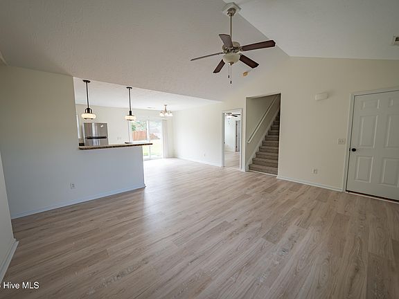Welcome to 203 Belvedere Drive in Holly Ridge! This charming 3-bedroom, 2-bath home has been lovingly refreshed and is ready for its next chapter. Step inside to find brand-new quality LVP flooring flowing throughout the first floor, with fresh carpet on the stairs and the spacious room over the garage. The primary bedroom features its own ensuite, giving you a private retreat to unwind. Outside, the curb appeal has been given a lift with newly painted shutters and front door, along with a tidied-up yard that makes the home shine. The large backyard is perfect for gathering with friends, playing, or simply relaxing after a long day. Located in a beautiful, well-kept neighborhood, this home offers the best of convenience and lifestyle—just minutes from Camp Lejeune, shopping, and dining, and only a short drive to the beach.
