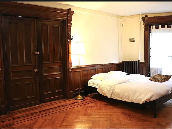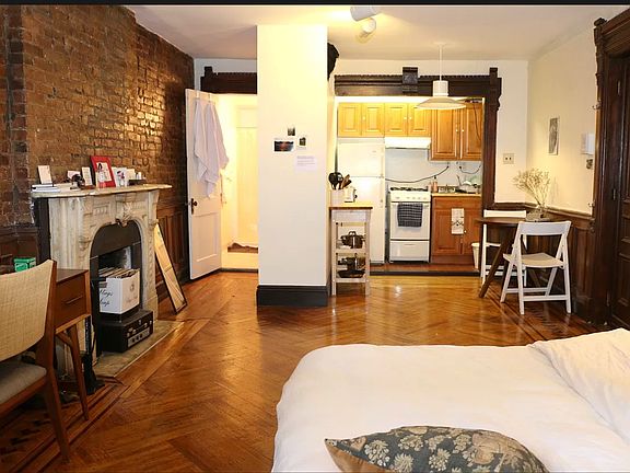 Studio apartment in North Park Slope in a charming detail-filled brownstone. On a quiet, tree-lined street, this apartment has tons of original Victorian detail including french mahogany doors, a decorative fireplace, hardwood floors, and ornate moldings. If you have a green thumb you are welcome to garden in the front garden right outside your window. Laundry machines and free bike storage in building. No brokers fee. Prospect Park is 2 short blocks away. A 3-minute walk to Grand Army Plaza and a block from the Park Slope Food Coop. Right near the farmers market, yoga studios, bars, and restaurants. This is a smoke-free building. AVAILABLE JUNE 1. Showings by Appointment Friday April 4th from 5pm - 7pm. I've included a video with different furnishings than the photos so you can see two ways that the apartment can be set up.