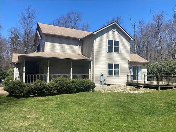 Beautiful Contemporary Colonial Home bordered nicely by rhododendrons on a quiet cul-da-sac in the Pocono Farms Country Club Association. This home can be used as your private residence or as a full time short term rental property (approved and inspected) which makes it perfect for your personal Pocono Getaway with potential of substantial income when rented. Quality laminate flooring throughout, also with recessed and quality lighting fixtures. Open two story foyer with plenty of natural daylight. An ultra modern Eat-in kitchen boasting an over sized island, all new stainless appliances, double cast iron sink, along with a commercial grade gas stove oven and more. Open concept first floor with a floor to ceiling fireplace, suitable dining room with slider leading to the side deck. A beautiful first floor bath with custom marble floor and shower. The ultra modern glass staircase leads to two nicely sized bedrooms, a wonderful full bath, and the nicest Master Suite I've seen. Must See!