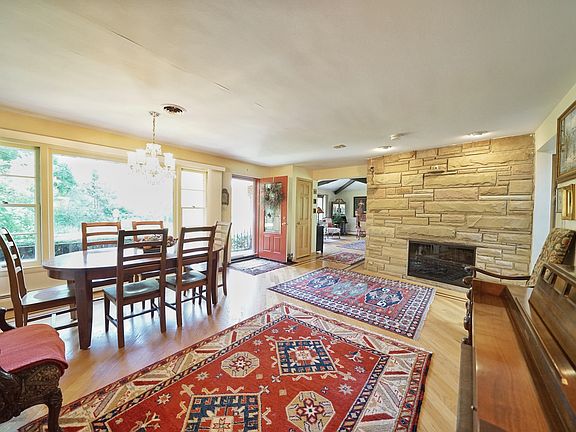 Welcome to this exquisitely maintained 3-bedroom, 2-bathroom brick-raised ranch, set on a generous 3/4-acre lot in the desirable village of Inverness. From the moment you arrive, you'll be greeted by the professionally landscaped front yard, featuring an array of mature trees and vibrant flowers that create a warm and inviting first impression. Inside, the home boasts gleaming hardwood floors throughout, with a spacious living room centered around a cozy wood-burning fireplace. The tasteful decor throughout the home creates a harmonious blend of comfort and sophistication. The family room, with its hardwood flooring, cathedral ceiling, and see-through fireplace, adds an additional layer of elegance. This thoughtfully designed home includes a separate living and dining room, three spacious bedrooms, and a remodeled full bath with a large shower on the main floor. The galley kitchen, equipped with stainless steel appliances and a delightful dining area, opens onto a sprawling deck, leading to a super private backyard oasis. This outdoor space is perfect for entertaining, featuring a screened gazebo that provides a peaceful retreat. The home is filled with natural light, thanks to its many windows that allow sunlight to pour in, creating a bright and airy atmosphere throughout. With central air and a zoned heating system, comfort is assured year-round. The fully finished basement adds to the living space, offering a family room, bar, second full bath, and plenty of storage. Additional features include a two-car attached garage with a private driveway, ensuring convenience and privacy. Recent updates include the replacement of some windows, further enhancing the home's bright and welcoming ambiance. With a newer roof installed in 2015 and an attached two-car garage, this home offers both beauty and functionality. Nestled in the heart of Inverness, this property provides a tranquil, private setting while being conveniently located near top-rated schools and local amenities. Don't miss this exceptional opportunity to experience the finest in Inverness living, where elegance and comfort meet.