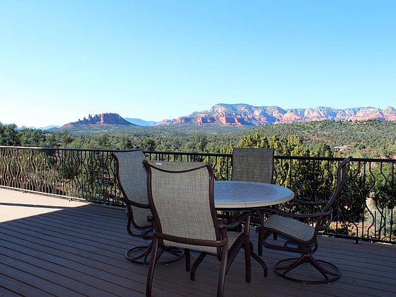 Soaring walls of glass framing some of the most Spectacular Red Rock views in all of Sedona! Significant remodel in 2007. No HOA. Short term rentals ok. From the moment you enter, this home draws your attention to the Red Rock Views. Built without compromise, this home offers high end amenities including T & G ceiling, Noche travertine flooring, alder doors, upscale lighting and double washer/dryers. Media room. Downstairs In-law suite with separate entrance and driveway. Two offices, exercise/bonus room. 800 SF of Trex and 800 SF Flagstone patio. (Great for entertaining) Spool and fire pit to enjoy the outdoors. Sellers are AZ Realtors. Furnishings are available