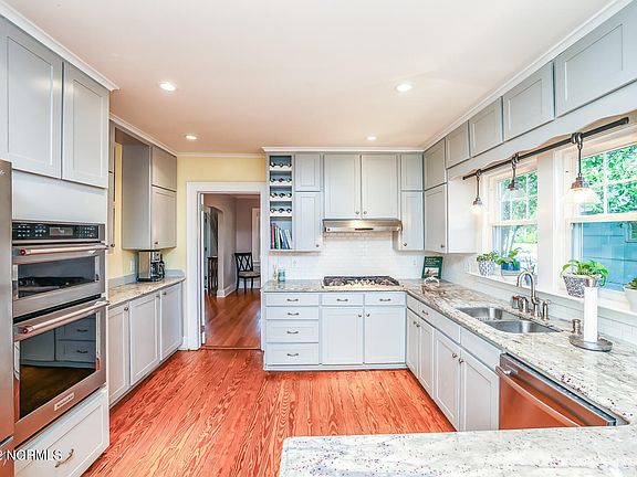 Don't miss the chance to view 203 Brookwood Avenue, a truly special home with no detail overlooked in one of Wilmington's most welcoming neighborhoods. From the sidewalk, you walk up the steps to the front yard, complete with a white picket fence and deep, wide front porch. Inside you'll find a formal living room with fireplace, dining room, and an expertly designed kitchen with a gas cooktop, granite countertops, custom cabinets, bar and eat-in kitchen. Just beyond is a laundry room and another cozy sitting room. The light-filled sitting room leads to the large screened-in porch with a vaulted ceiling that overlooks the private and well appointed backyard. From the mature Japanese maple trees, to a custom built fireplace and patio, to the treehouse, and shed - the outdoor spaces in this home are exceptional. Downstairs is a full bathroom and two guest bedrooms, one of which has been used as a home office and has extensive custom built-ins and a Murphy bed. Upstairs is a loft area, an additional bedroom and the beautiful primary suite. The primary suite has plenty of space, large closets and an elegant bathroom including a beautiful, tile walk in shower and soaking tub as well as double vanities. This home is perfect for buyers looking for something that is turn-key but still has enormous character in a historic neighborhood with a private driveway. It is also wonderful for those who want to enjoy being outdoors year round. From the front porch swing you can get to know your new neighbors and on the back porch, this home is the perfect place to enjoy your coffee each morning as the seasons change.