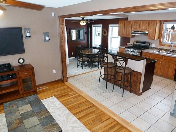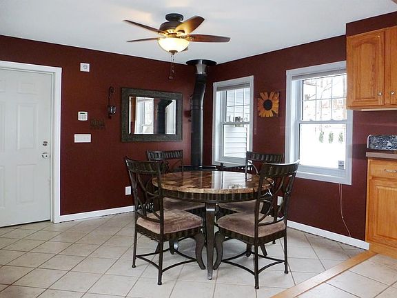 Remarkable Cape with open floor plan. Move in ready home with 2 car attached heated garage, and large workshop area. Wired for a generator (panel in basement). Spacious remodeled kitchen with newer cabinets, tiled floor and updated stainless steel appliances. Center island with granite counters and settings for 2 bar stools. Loads of cabinet space with window above sink over looking private back yard. Sitting dining area with permitted wood stove and tiled floor. Living room has hardwood floors, new insulated front door. First floor master bedroom with walk in closet. Huge, spacious Bath completely updated with large shower/tub, new bessel sink, updated lighting and cabinet. Second floor has 2 bedrooms with hardwood floors and plenty of closet space. Partially finished basement with carpeted exercise area, second large work shop area, home office area, large laundry area with sink, and plenty of storage with built in shelves. Home has new 30 year arch shingled roof, new vinyl siding, insulated windows through-out, on demand hot water system, ready for cent air. Private yard with 1/4 acre lot and 1 open shed, (10x15 wood shed), and a smaller custom storage shed with in built in ramp, and electricity. Beautiful, enclosed raised bed gardens for growing fruit, vegetables, flowers and herbs. Electric upgraded 3/2021! Must See!!!