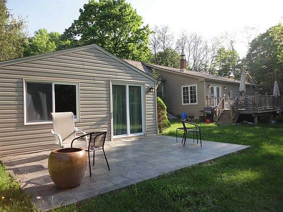 Don't miss this Cozy Remodeled Ranch in private setting. This home offers 2/3 bedrooms, 2 full bathrooms, LVRM, DR, Sunroom leading to deck, Large EIK with granite counters and plenty of cabinets & inviting foyer/entrance way.Home also features detached garage with bonus room and patio. New siding,new windows, new roof, new septic, new well pump