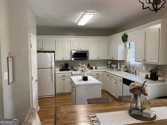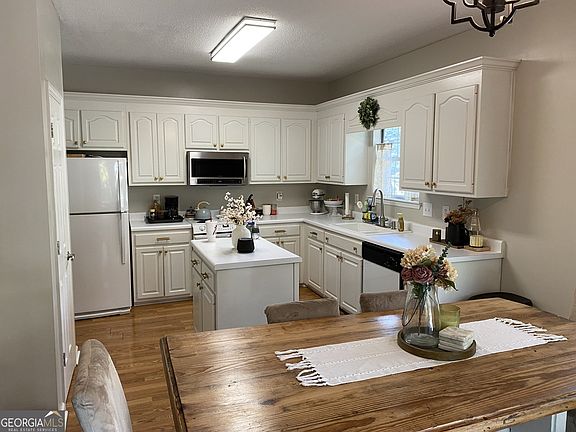 Too cute! 1 level, split bedrooms, open concept, wood floors, vaulted ceilings. Brand new roof! Trey ceiling in primary bedroom. Back yard is a child's paradise. Swing set/jungle gym does not stay. Priced to sell. You will love this well maintained home! Great North Macon neighborhood and schools! Beautiful creek on property!