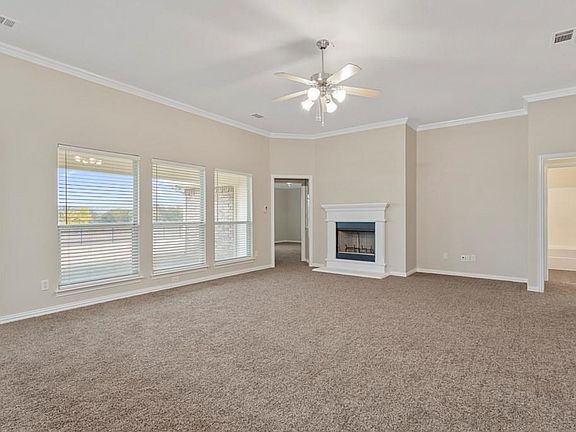 GORGEOUS 3 BEDROOM, 2 BATHROOM HOME ON CLOSE TO A HALF-A-ACRE LOT! Your family will love this stylish home graced with extensive luxury plank flooring, high ceilings, and crown molding. The gourmet kitchen boasts plenty of counter space, an island, and a walk-in pantry. Host in the living room showcasing a wood burning fireplace, large windows, and access to the patio. This master suite will be a haven where you can relax and enjoy the garden tub, separate shower, and walk-in closet. Spend summer evenings on the covered patio or playing in the massive yard. Located near downtown Rhome, a lake, and close access to Highway 287!