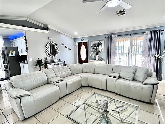 Great Home with a wonderful split plan, features over 1,500 sq. ft. This beautiful, bright, and light home boasts soaring high vaulted ceilings in main areas, ample natural light, split 3/2 bedrooms, plus a 2-car garage and an amazing patio area. The remodeled kitchen has wood cabinets, granite counters, stainless appliances, backsplash, breakfast bar, an additional seating area overlooking at the patio area and family room. The spacious principal bedroom has an ample walk-in closet and remodeled bathroom with dual sinks, wood vanities, granite counters, and a walk-in shower. Among many of the upgrades, this home offers are new roof 2021, new A/C, water heater and ductwork, and blown insulation 2018. it has an full outside kitchen and an amazing gazebo. Sprinkler system and full led light all around the house.
