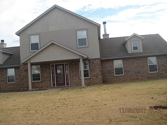 Biggest house in little town of Geronimo, just S of Lawton. Lots of house and a giant lot in new housing addition for bargain price. Monster master suite downstairs with fireplace. 3 large bedrooms and bath upstairs. Additional features - 1/2 bath/powder room, giant kitchen, laundry and dining areas, 2-3 living areas, breezeway to big 2 car garage. Covered porch in front and big east side covered patio on back. 2 central heat and a/c units. Has storm cellar and workshop with electricity and a/c. RV/boat/trailer concrete parking inside wood privacy backyard.