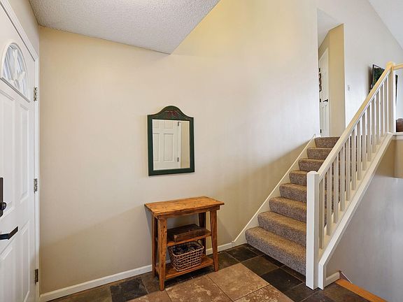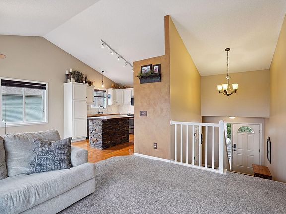 Located on a corner lot of a quiet cul-de-sac, this split level home will not disappoint. Whether you are coming through the huge 3 car garage or front door, you will appreciate the spacious foyer that welcomes you home. Just up the stairs is the vaulted living/dining and kitchen area. The open concept is great for everyday living but still maintains delineated spaces with hardwood floors in the kitchen and dining areas while newer carpet encompass the living room and 2 well sized upper level bedrooms. The updated kitchen features Walnut butcher block countertops, GE "slate" appliance package and tiled backsplash. The full bath on this level was also updated in 2021.