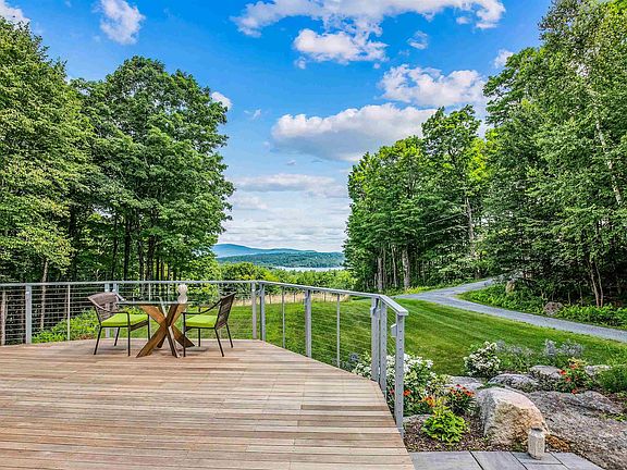 Enjoy long range mountain and Little Lake Sunapee vistas from every room and vantage point in this bright, sunny contemporary located on 7 private acres. Wide soaring windows and an infinity glass wall insure the views are ever-present. The main level features open concept living/kitchen/dining. Enjoy morning coffee in the year round porch with infinity sliders bringing the outside in. The primary suite features a spa quality bath. Upstairs find a private office, loft and 2 bedrms with en-suite updated baths. The lowest level features a recreation/hobby room, abundant storage, and workshop off the 2 bay garage. Energy efficient with a brand new 9.43 KW net solar installation to help you keep costs down. Colby Hill offers shared access to a private sugar sandy beach on Little Lake Sunapee. Boat moorings are permitted. Little Lake Sunapee is a 400 acre pristine lake located just minutes from the New London village and approximately 10 minutes to Mt. Sunapee Skiing. A very rare opportunity!! Showings Start Monday, July 3rd between 1pm and 3pm