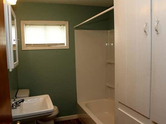 Four bedrooms, 1 bath, gas fireplace in living room.