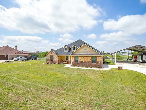 Discover the perfect blend of comfort, space, and Texas-style outdoor living on 2 peaceful acres in Decatur with no HOA. This custom-built 4-bedroom, 2-bath home offers an open, welcoming layout designed for both everyday living and entertaining. Inside, the spacious family room features wood floors, a classic brick fireplace, built-in shelving, and surround sound with a 7.1 in-ceiling speaker system. The kitchen showcases professionally crafted dark walnut cabinetry, granite countertops, and an under-sink water filtration system. Step outside to an outdoor setup made for unforgettable gatherings featuring a full outdoor kitchen with a propane grill, griddle, durable concrete countertops, and built-in barstool swings. Enjoy quiet mornings at the stocked pond with bass and catfish and relax on the covered dock while taking in the tranquility. The property is fully fenced and includes incredible parking and workspace options with a 40 by 60 carport pre-wired with a stereo system and outdoor speakers, a 50-amp RV hookup, and clearance for large vehicles with 12.5-foot side and 18-foot center height. An attached 12 by 60 spray-foamed shop with electrical is ready for projects, additional lighting, and welders. Additional highlights include a water softening and purification system, full sprinkler system, gutters, and a camera security system at all four corners. For peace of mind during Texas storms, an in-ground storm shelter is located just steps from the back patio and is built to accommodate up to 12 people. Conveniently located just 8 minutes from Decatur’s historic town square, this beautiful property offers the perfect balance of privacy and accessibility. Schedule your showing today and experience this rare opportunity for country living close to town.