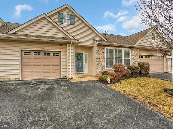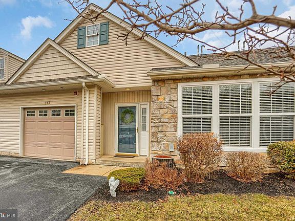 Meticulous upper level villa in Bailey Springs. Breakfast on your oversized balcony, overlooking beautiful fields and trees. Enter into this fresh as new home with pristine paint, immaculate carpets, tiled foyer. Large traditional lvrm/dnrm combo gives plenty of room for family gatherings. The sunny kitchen features 42" high kitchen cabinets, under cabinet lighting, and an eat -in kitchen nook that opens to the balcony with views. The master suite is serene : showcasing tray ceiling* crown molding* chair rail*sitting area*walk-in closet* and master bath. One car garage w/ room for a bit of storage enters into mudroom/ laundry - keeping life easy. Neighborhood features a lovely clubhouse with exercise room and party room if you have a large event . Yards and gardens are maintained by the HOA*as is snow removal - throw away your shovels! Smart location with easy access to I-83 but in a quiet and tranquil setting surrounded by nature. You can walk to the public library and small strip mall, or in the summer stroll a few blocks to the ice cream shop on the corner. This villa is turn-key - neutral, immaculate - just move on in. Call us - we will help!
