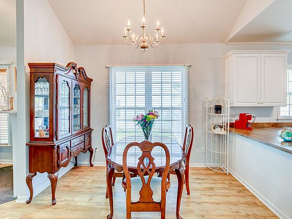**UPDATE - Seller is remodeling the kitchen with brand new white granite countertop along with backsplash and kitchen sink. Estimated installation is on July 7th** Cheery house in a neighborhood with great amenities! This home is a vibrant gem that will instantly capture your heart. From the moment you set foot on the front porch, you'll be greeted by the warm and inviting atmosphere of this delightful abode. Step inside and be amazed by the beautiful new flooring and vaulted ceilings that add a touch of elegance to the open living space. The freshly painted interiors create a clean and crisp ambiance, making it easy for you to envision your personal style shining through.Entertaining will be a breeze in this home, with a spacious dining area seamlessly flowing into the kitchen. There is ample counter space and an abundance of cabinets provide all the storage you need. The peninsula adds a stylish touch while offering a convenient spot for casual dining. There are stainless steel appliances, including a new dishwasher, microwave, and garbage disposal, to make cooking a pleasure. Retreat to the primary suite, featuring dual vanities and a walk-in shower that exude sophistication and comfort. Two additional bedrooms and a luxurious full bathroom which features a relaxing jetted tub ensure that there's plenty of space for family and guests. This delightful home also features the exquisite touch of crown molding in both the kitchen and the second bathroom. The laundry room, complete with built-in storage, adds convenience to your daily routine. Outside, you'll discover a detached extended garage with a parking pad, offering ample room for your vehicles. The manicured lawn and landscaping, along with a sprinkler system, make maintaining the outdoor spaces a breeze. Spend evenings on the back patio, enjoying the tranquility and privacy of your own oasis. To top it all off, a new HVAC system was installed in 2022, ensuring year-round comfort and energy efficiency. Neighborhood amenities include a pool, playground, clubhouse, tennis and basketball courts, walking and biking trails.  This property is located .7 miles from Publix and restaurants, 3.7 miles from historic downtown Summerville, 15.5 miles from Givhans Ferry State Park, and 17.4 miles from Charleston International Airport.