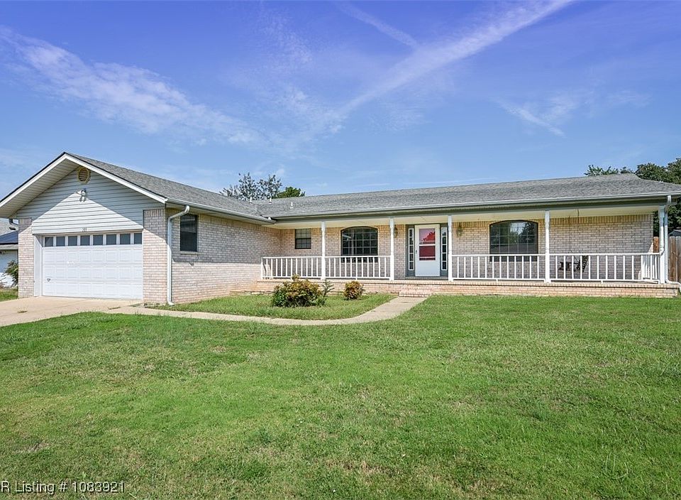 3 bed 2.5 bath in Roland Knolls addition. This brick home features a split floor plan, wood burning fireplace with gas starter, updated HVAC system, sunroom, large front and back porches, storage sheds, and additional RV parking.