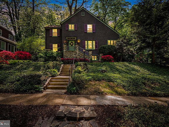 Step into this charming storybook cottage, meticulously maintained and nestled on a secluded, landscaped lot in Roland Park. This three bedroom, two-and-a-half bath home is full of character, with beautiful hardwood floors throughout. The first floor welcomes you with a cozy living room centered around a wood-burning fireplace, a spacious dining room, an updated kitchen, and a convenient half bath. A standout feature is the inviting sunroom with custom bookshelves. Both the sunroom and dining room open onto a spectacular private deck which is perfect for entertaining. The backyard boasts terraced landscaping that adds to the home's storybook charm. Upstairs, the freshly painted second floor offers a primary bedroom with two closets, two additional bedrooms, and two full baths. Both full baths were tastefully remodeled in 2023, to blend modern comfort with classic style. The unfinished lower level provides abundant storage space and houses the washer and dryer. All of the interior trim has been freshly painted. Ideally situated, this is just a short distance from Eddie's, Starbucks, the library, schools, and the Roland Park pool offering both convenience and a strong sense of community.