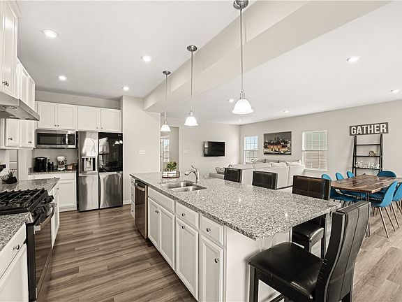 Situated in the desirable Jackson Ridge neighborhood, this stunning home perfectly combines elegance and practicality. It features 3 bedrooms, 3 full baths, a 2-car attached garage, and an open floor plan. Upon entry, a charming office with French doors sets a refined tone. The bright living and dining area opens to a patio, perfect for watching sunsets. The Patio was added after the home was purchased. It created a wonderful flat entertaining space. The kitchen is a culinary delight with a large island, stainless steel appliances, and plenty of cabinetry. An additional office space is conveniently located off the garage. The second floor offers three bedrooms, a full bath, a laundry room, and a loft-style family room. The lavish owner's suite features dual walk-in closets, and an en-suite bath. The finished lower level includes a full bath and a game room, providing ample space for entertainment.
