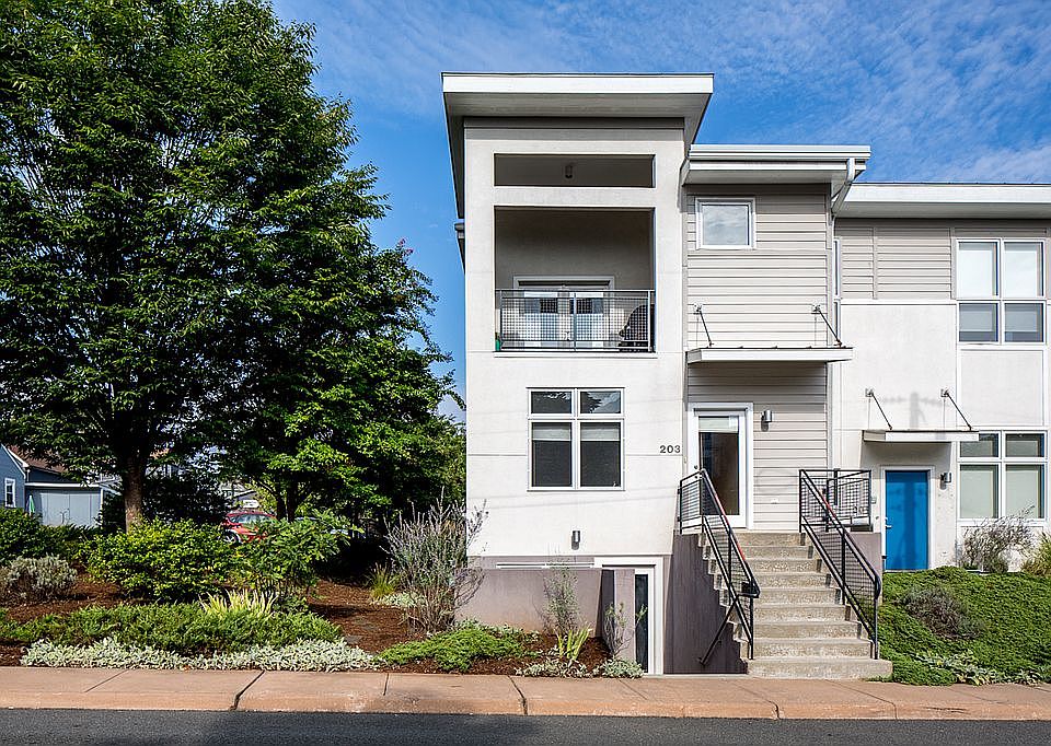 Live/work townhome in desirable Belmont! Walk to the Downtown Mall, Pavilion, neighborhood restaurants and more. This location can't be beat! On-site parking, mountain views, a beautiful corner-lot yard with mature landscaping, hardwood floors, tiled bathrooms, and a spacious, open floor plan. Large windows let in ample natural light. Cathedral ceilings in upstairs bedrooms. Amazing loggia off of the master for your morning coffee. Full basement apartment with dedicated entrance + private patio can be used for office, studio, or additional living space and has functioned for several years as a popular short term rental. Contemporary home with downtown convenience! Upstairs unit is 2bed/2.5ba. Downstairs unit is 1bed/1ba.