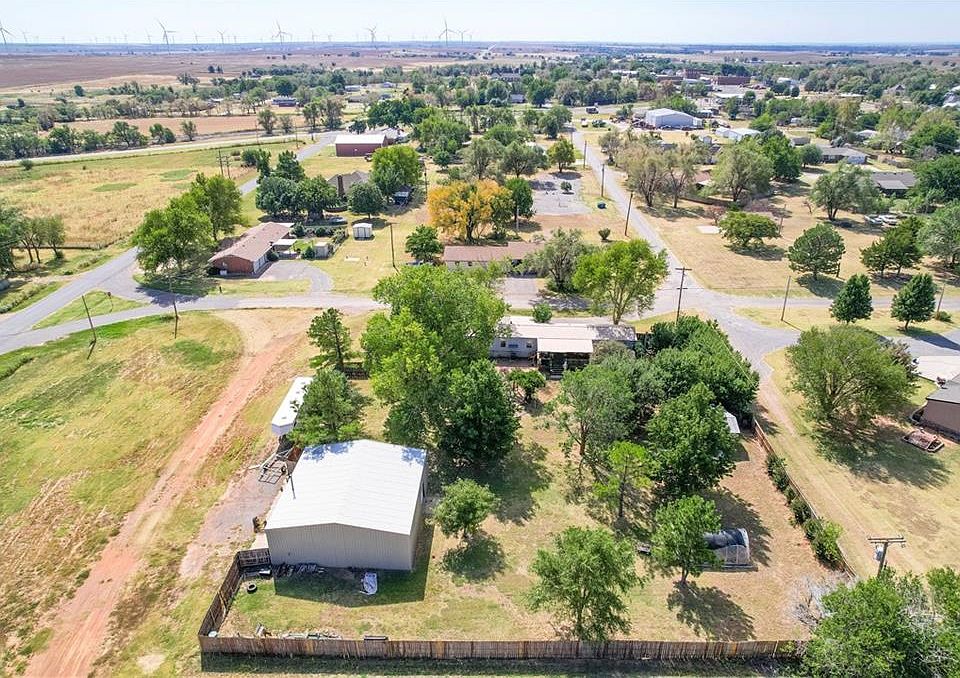The 1,216 sq. ft. Custer County home features 3 bedrooms and 2 bathrooms including a large main suite. The backyard features a covered patio and plenty of space to entertain. The Western Oklahoma home features over half an acre surrounded by a privacy fence. Additional features include a 40' x 40' metal building, a 16' x 20' insulated outbuilding/guesthouse and a greenhouse.