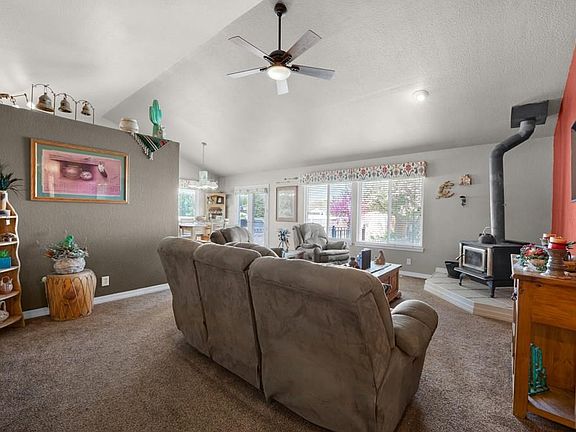 Welcome to this beautiful ranch-style home nestled in the heart of a wonderful Pueblo West community. As you approach, you'll be greeted by the inviting front landscaping, setting the tone for what awaits inside. Upon entering, you'll be welcomed into an open living room featuring vaulted ceilings that lend an airy feel to the space. A corner wood-burning stove adds warmth and character, perfect for cozy evenings. Natural light pours in through large windows, illuminating the room and creating a welcoming ambiance. The adjoining kitchen and dining area are designed for both functionality and style. The modern kitchen boasts granite countertops, stainless steel appliances, and ample rustic cabinetry, providing plenty of storage and workspace. A peninsula island offers additional seating options, ideal for casual dining or entertaining guests. From the dining room, a French door leads out to the back deck with an iron railing, overlooking the expansive backyard, perfect for dining outdoors This home features three spacious main-level bedrooms, including a luxurious primary retreat complete with a walk-in closet and en-suite bath. For added living space and versatility, the basement boasts a family room, providing ample room for relaxation or entertainment. Outside, the large private backyard is fully landscaped and ready for springtime enjoyment. Charming stone pavers lead to a gazebo, offering a serene spot for relaxation or outdoor gatherings. A workshop in the backyard provi